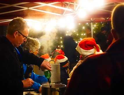 The celebrations continued with an offering of free mulled wine, roasted chestnuts and delicious homemade tomato soup made by Sue. The Melody Makers put on a brilliant performance and got the entire crowd singing along to a whole host of traditional carols. Johnnie also kept everyone warm by tending the roaring brazier.